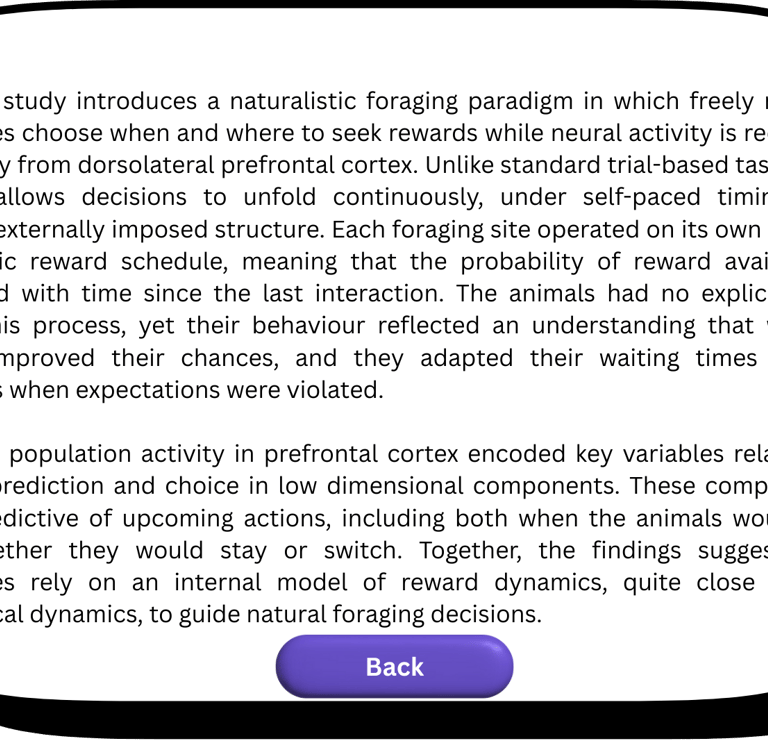 We study embodied choices. These are the choices we make with our brain and body together. For example, as the sensory parts of our brain process external information, our body generates internal physiological states. These internal states directly influence our choices by adding variability to our decisions that is not explained by momentary external stimuli but by long-term effects of many external and internal factors. They help us dynamically adapt to the outside world while remaining the same individual.
